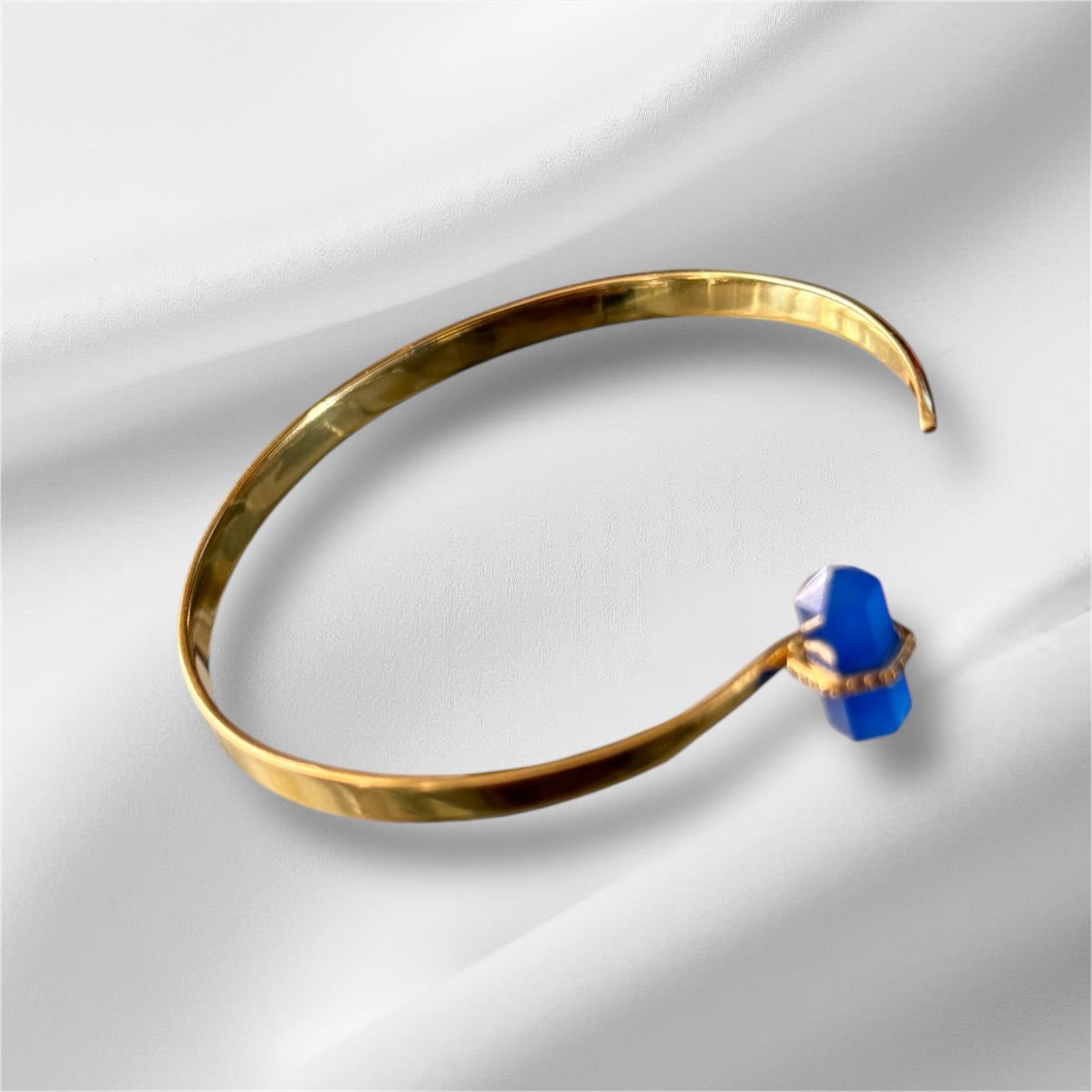 Aventurine Natural Blue Quartz Cuff Statement simplicity meets stone's natural rhythm. This cuff, crowned with sky - toned blue quartz, brings a calming boldness to any wrist.