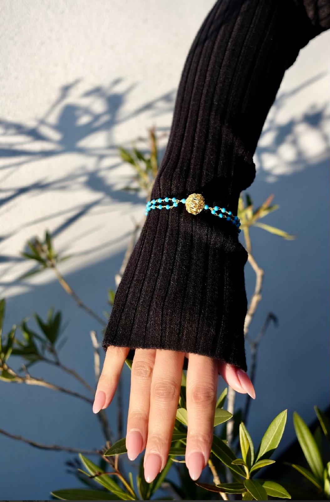 A nod to tradition with a contemporary finish. Strung with uniform cultured turquoise blue beads, this bracelet layers effortlessly and evokes a timeless cool.