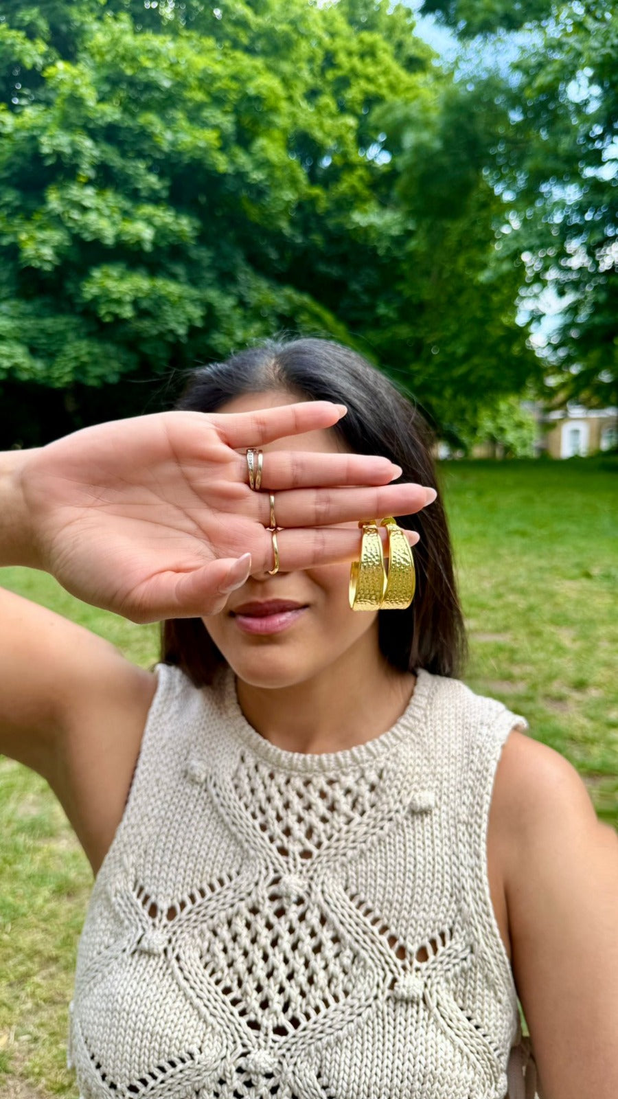 Celestial minimalism. These earrings feature orbit - inspired rings that float gracefully around a central gleam, clean, modern and hypnotic.