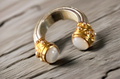 A quiet shimmer, like dawn on still water. This cushion cut Mother of Pearl ring catches light from every angle, serene, feminine and endlessly werable.